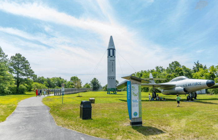 Let the kids run around outside at Air Power Park. Throughout the park there’s aircraft on display, there’s a playground to the right for younger kids, and the entrance for Waterwalk Path is to the left. There’s also a small indoor museum displaying miniatures, models and a children’s room for little pilots.